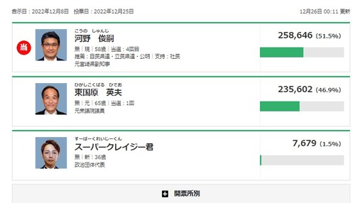 宮崎県知事選、接戦の末に現職がギリ勝利