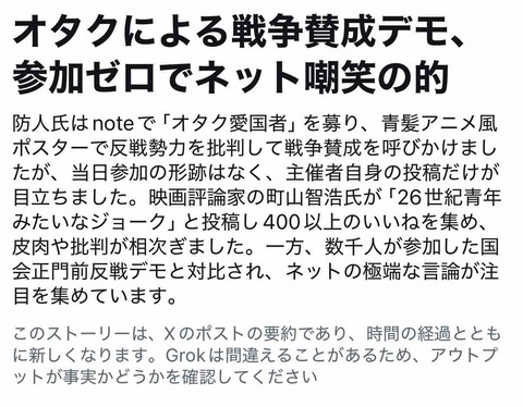 ウヨちゃん、反戦デモに対抗して『戦争賛成デモ』を開催→参加者ゼロで赤っ恥。「戦争に賛成の人なんているわけない」とは何だったのか