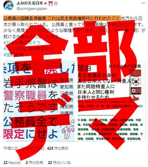 「民主党政権が公務員の国籍条項を廃止した」はデマ