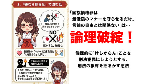 国旗損壊罪の危険性がわかるページ②:倫理的に「けしからん」のと犯罪は別物