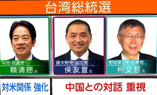 台湾総統選、明日投開票日 野党が一本化できず三つ巴の戦い