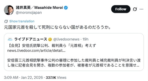 【低知能すぎる県議】諸井真英「安倍晋三は国家元首。国家元首を殺して死刑にならない国なんてあるだろうか」【自民除名】