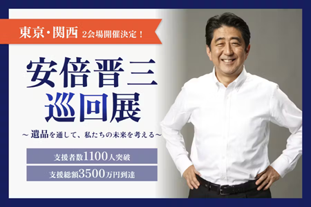 「安倍晋三回顧展」開催のお知らせ。安倍の小学生の頃の日記や撃たれた時に持ってたマイクなどを展示