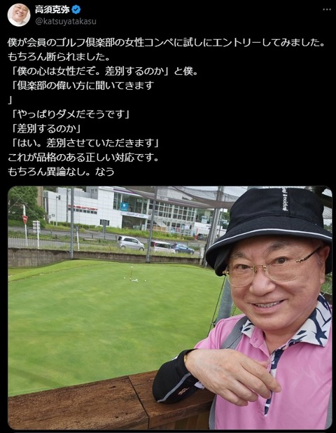 【下劣】高須克弥「僕の心は女性だからゴルフの女性コンペに出せ」とLGBTを揶揄