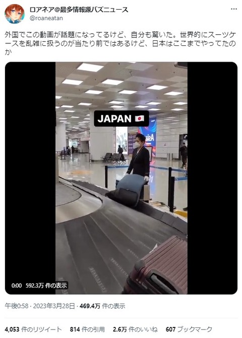 「日本の空港のサービスすごい!」←中国の空港の映像でした