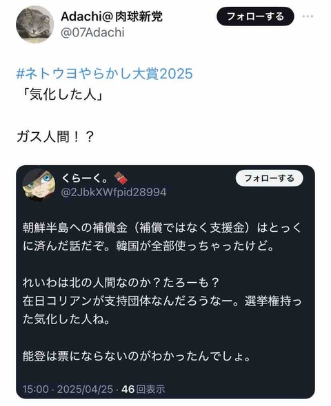 「なんでTV局すぐ借りた資料なくしてしまうん?」→ウヨちゃん「これはマスコミが戦争を煽ってた証拠を消すためのアカの陰謀」→1.9万いいね
