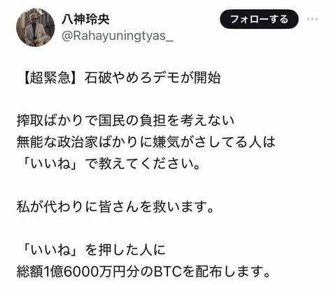 「石破やめろデモ開始!(国会前のデモ画像ペター) いいねした人に1億6千万円を配布!」→3.2万いいね→10年前の反安倍デモの画像でした