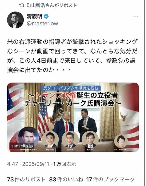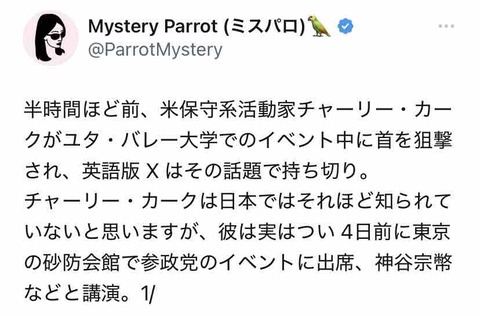 「銃は必要。毎年、銃で何人か死ぬのは自由の代償」と主張していた極右活動家チャーリー・カークさん、自らの持論に殉じ、代償を支払って崇高な死を遂げる
