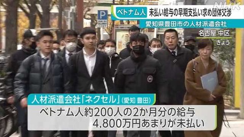 ベトナム人に給与未払いか、愛知 数千万円以上、大使館が調査要請