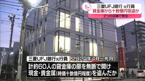 「まさか銀行が預かったお金を盗むとは」三菱UFJ行員が顧客の金庫から10億円窃盗