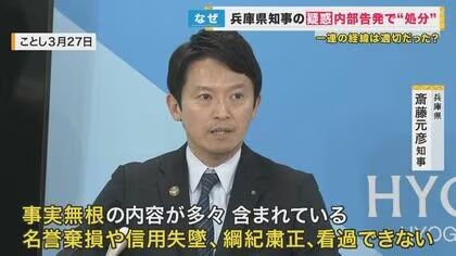 兵庫県知事を内部告発の職員、事実無根の内容だとして停職処分を受ける