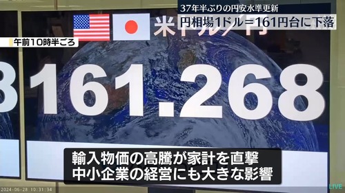 ついに1ドル=161円台突入! 1986年12月以来、37年半ぶり