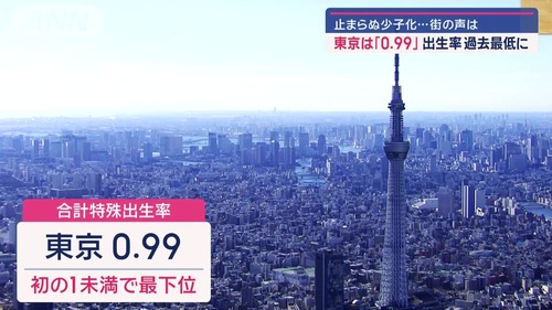 東京の出生率、ついに0.99