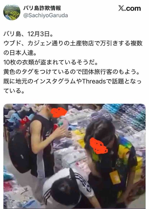 バリ島で日本人が万引き→ウヨちゃん「アレは関西人で純日本人じゃないから…」←この人、すき家ネズミ騒動では国籍透視して外国人のせいにしてたのに