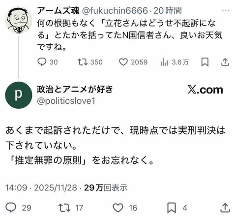 都合が悪くなると「推定無罪」を持ち出して批判をかわそうとするウヨちゃんのダブスタっぷりがひどいことに。何重に間違えば気が済むねん…