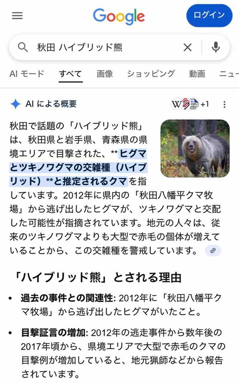 「秋田周辺で施設から逃げたヒグマがツキノワグマと交雑し、大型個体が増えている」←これホント?