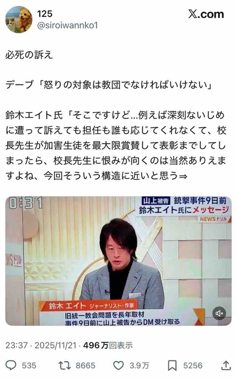鈴木エイト、右派の「統一教会を批判するのは、テロの目的を達成させることになるからダメ」という論調を一蹴