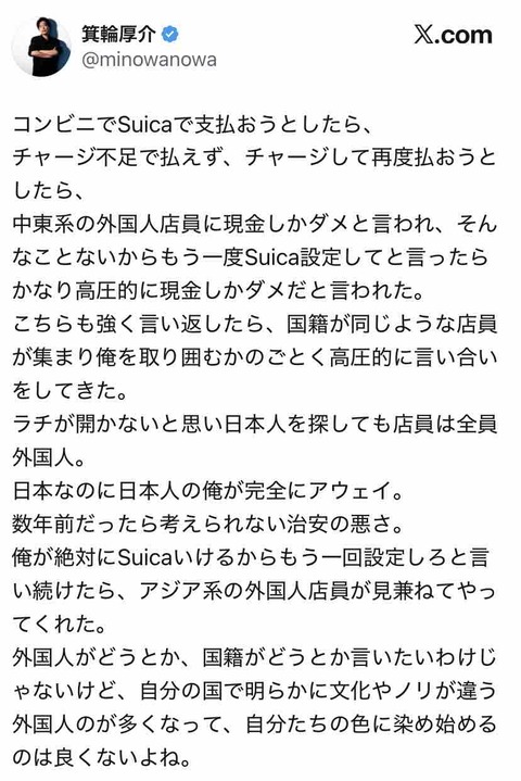 箕輪厚介氏、コンビニで支払い方法巡り外国人の店員と口論に 「それお金抜いてるな」のコメントに同意も