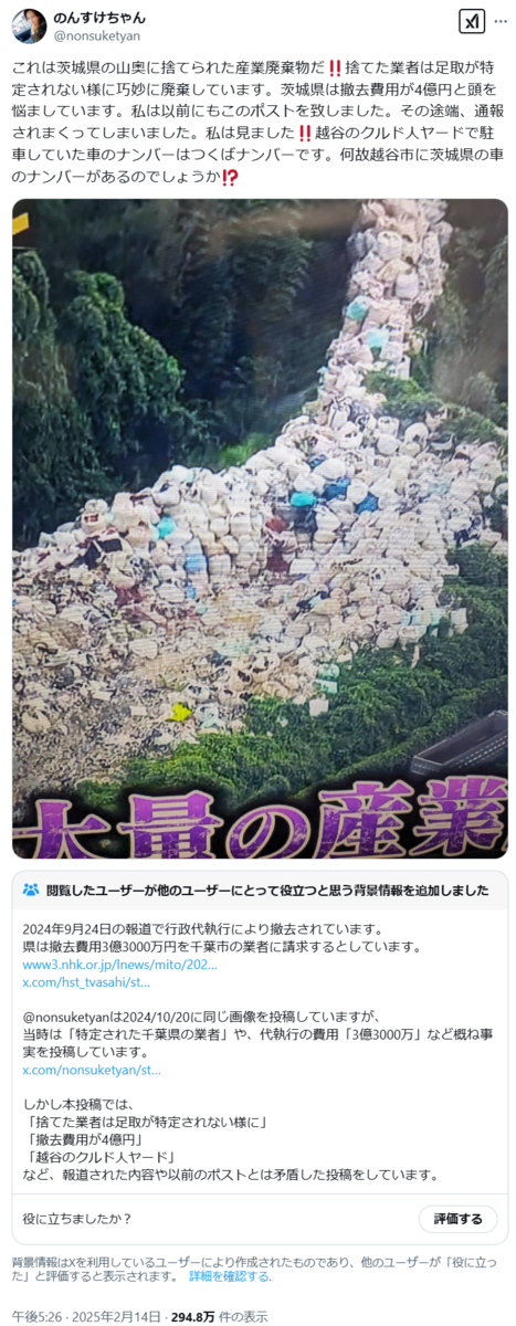 伊庭紀健に棄てられた産業廃棄物について、クルド人の仕業だと言わんばかりの「目撃情報」についてのメモ
