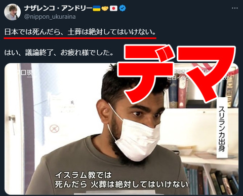 ナザレンコ・アンドリー「日本では土葬は絶対してはいけない」とデマを吐く