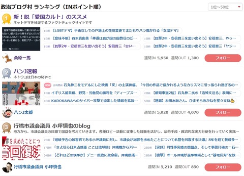 【報告】「にほんブログ村」政治部門ランキング1位達成