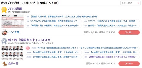 「新!脱『愛国カルト』のススメ」、ブログ村ランキングで坪慎也を抜き2位に浮上!