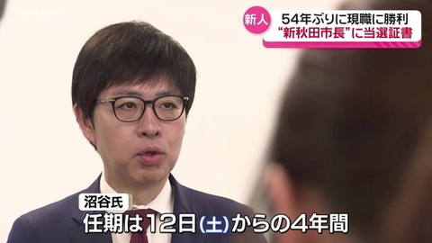 【秋田市長選】沼谷純氏(無=立憲民主推薦)が当選確実…新人が現職を破るのは54年ぶり