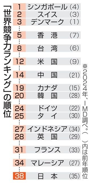 日本の競争力、38位に下落 企業の効率低下、最低更新