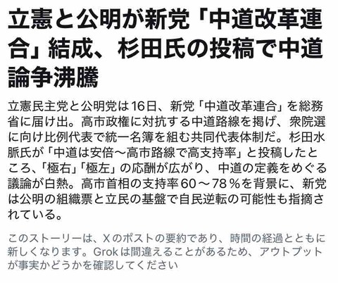 杉田水脈さん、「中道改革連合…? 中道は安倍・高市路線でしょ」と言い出す。独特が過ぎるバランス感覚で話題に