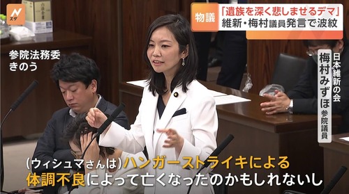 梅村みずほ議員、参院法務委委員から更迭されてしまう …維新・馬場代表「政治家として未熟。遺族が『酷い』と思うのは当然だ」