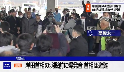 【NHKニュース速報】岸田首相の演説会場で爆発音 男が取り押さえられる