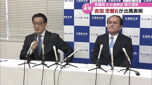 立憲・吉田忠智議員、参院大分補選出馬のため辞職 →前回当選は社民比例だったので大椿裕子副党首が繰り上げ当選