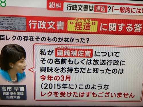 【悲報】】高市早苗さん「私が礒崎補佐官についてその名前を知ったのは今年の3月。2015年にこのようなレクを受けたはずがない」 →