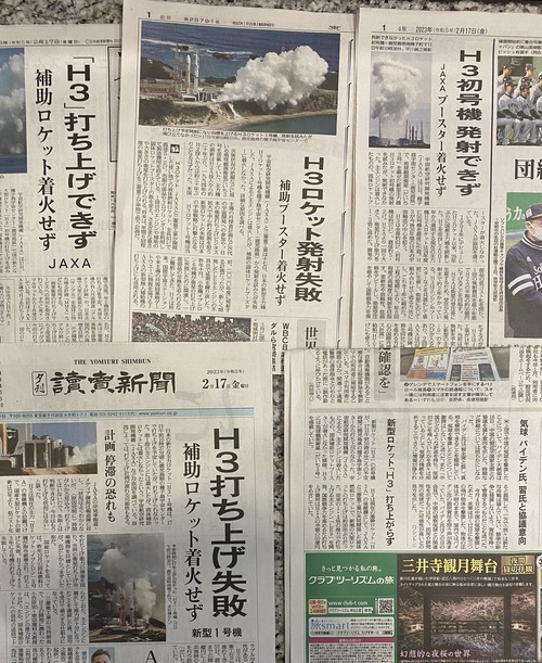 【悲報】読売新聞、夕刊で「H3打ち上げ失敗」と捏造報道か?