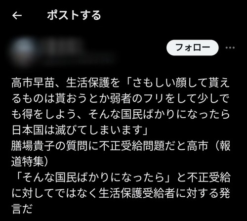 次期総理候補・高市早苗「さもしい顔して貰えるものは貰おう、弱者のフリして得しよう、そんな国民ばかりなったら日本は滅びる」