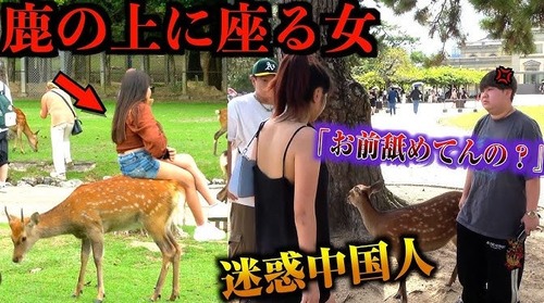 【模倣犯】YouTuber「女が鹿の上に座ってる!迷惑中国人!」 88万再生 →あからさまに合成www