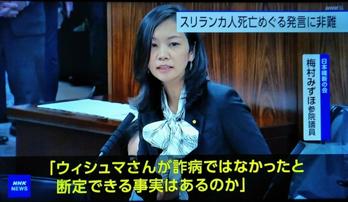 参政・梅村みずほ「私は『ウィシュマさんが詐病だった』とは言ってない。『詐病でないと断定できる事実はあるのか?』と聞いただけだ!」